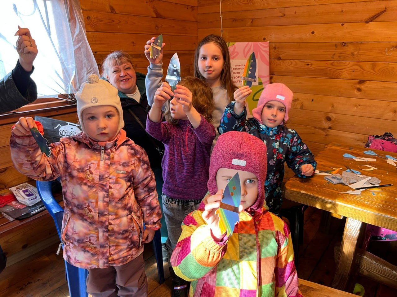 После весёлых космических игр всех собрали в библио-домике, где прошёл мастер-класс. Ребята с увлечением изготавливали ракеты своими руками, и, возможно, сейчас эти ракеты уже мчатся по бескрайним просторам космоса!