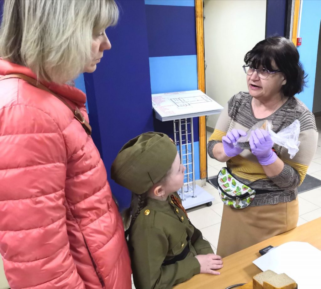 Ирина Ивановна Кудинова рассказала о пайке черного хлеба для детей в блокадном Ленинграде. Все желающие смогли отведать черного хлеба.