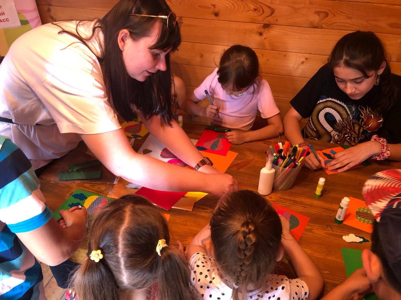 А для детей творческий мастер-класс провела руководитель клубного формирования Людмила Корсукова. Ребята выполняли своими руками красивые открытки с пожеланиями.