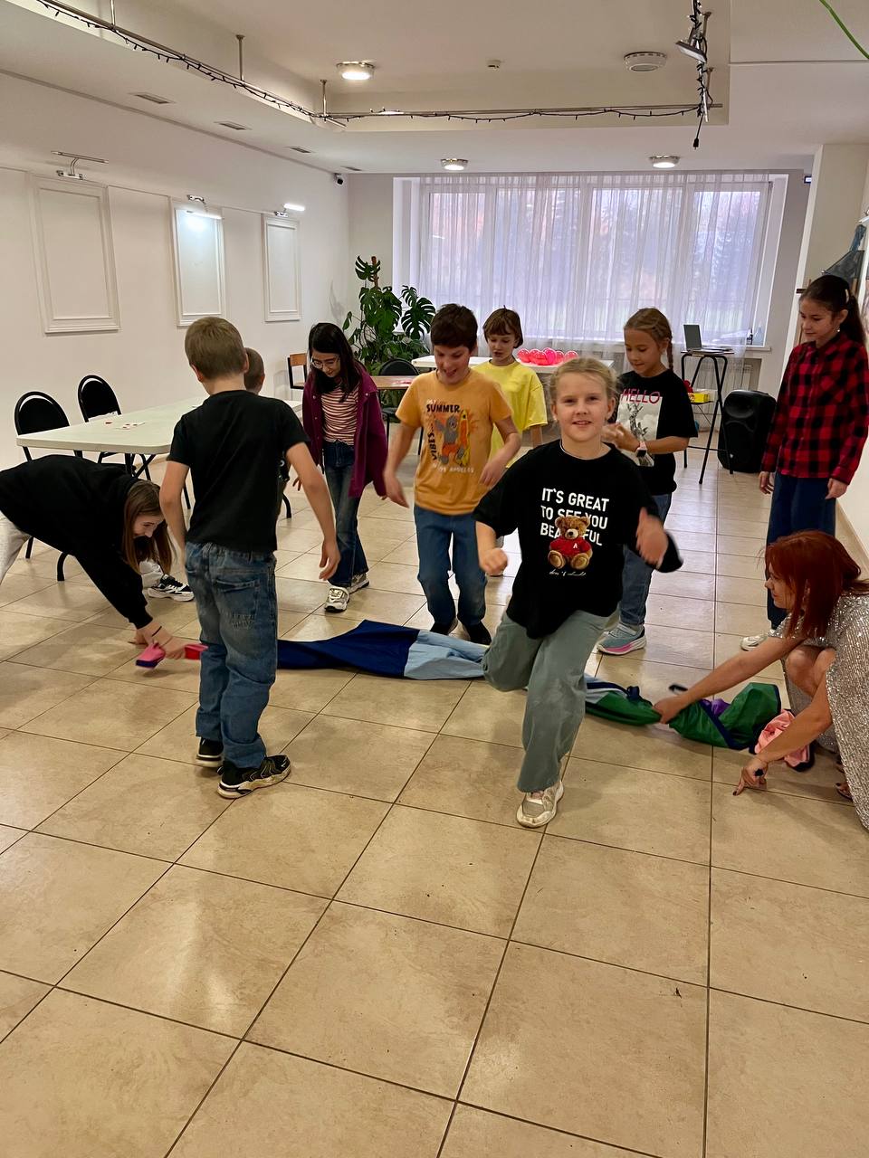 Ребята с удовольствием подпевали знакомым мелодиям и танцевали под зажигательные ритмы. Подвижные игры позволили детям выплеснуть энергию и размяться после интеллектуальных конкурсов.