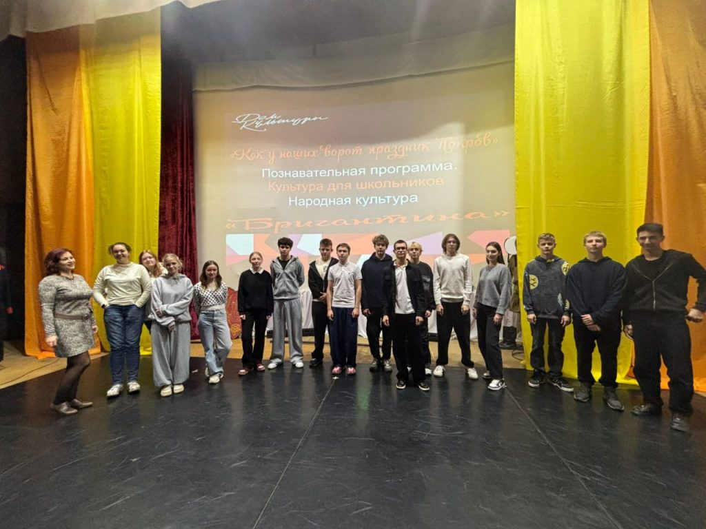 В Сельском Доме Культуры «Бригантина» 22 октября состоялась увлекательная познавательно-развлекательная программа «Как у наших у ворот праздник Покров» в рамках проекта «Культура для школьников». На мероприятии присутствовали учащиеся 10 и 11 классов Останкинской СОШ корпус Каменская № 2.