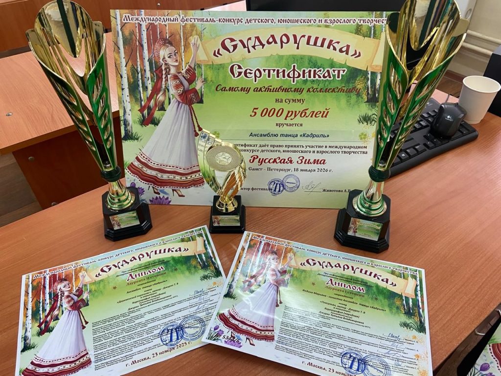 23 ноября Ансамбль танца «Кадриль», Дома культуры «Икша», под руководством Джурко Т.В., принял участие в Международном фестивале-конкурсе детского, юношеского и взрослого творчества «Сударушка», который проходил в городе Москве.
