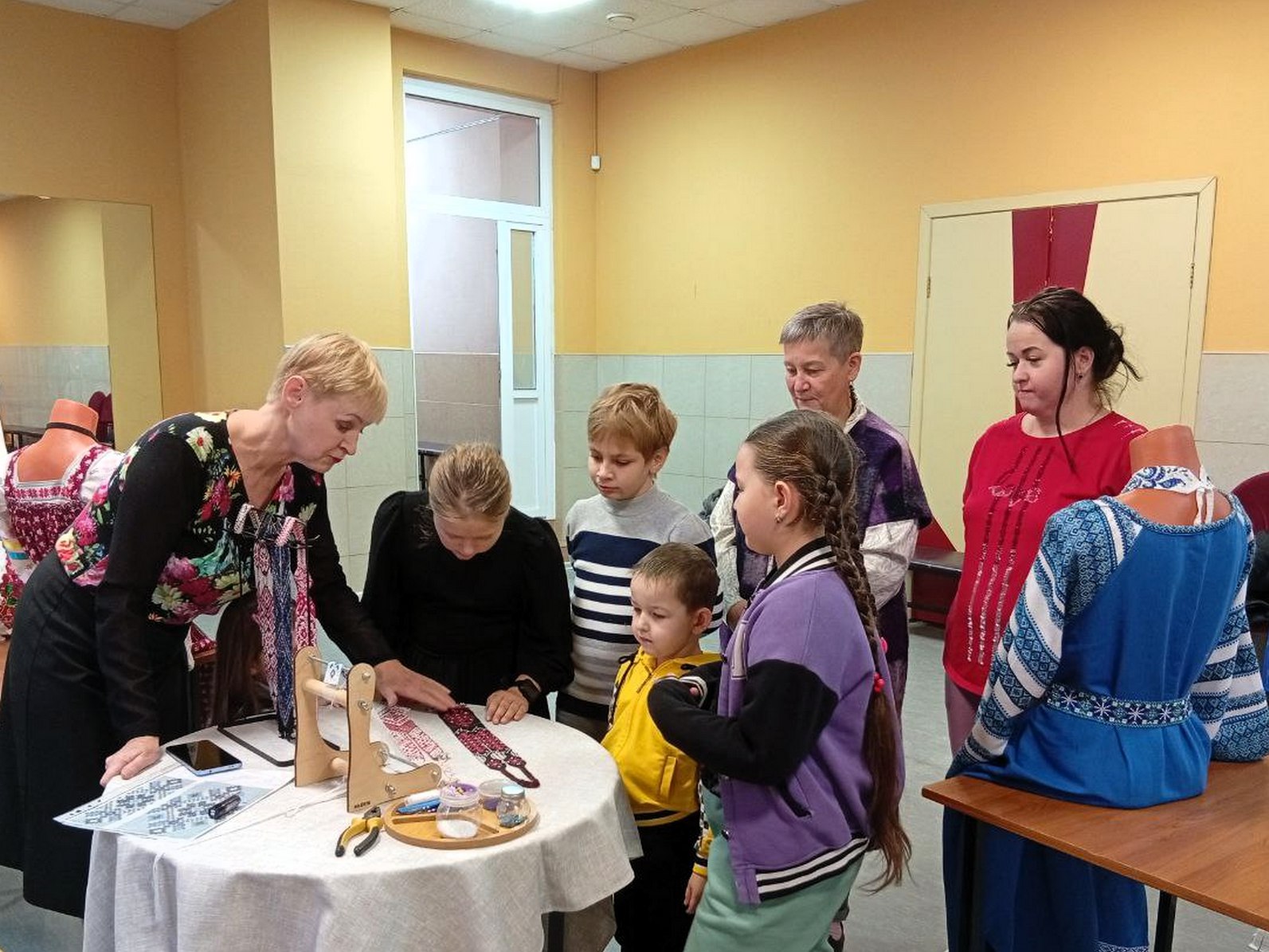 Гостям рассказали о тонкостях мастерства и кропотливости процесса создания каждого изделия. Посетители смогли лично убедиться в уникальности и красоте работ мастерицы. А юные участники не только примерили готовые украшения, но и попробовали себя в роли начинающих мастеров, создав пару первых рядов на специальных станках.
