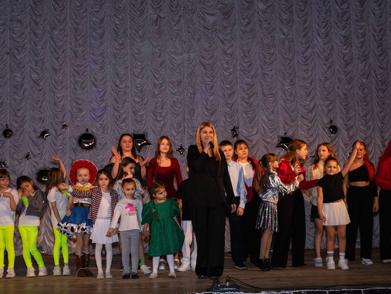 Зрители наслаждались исполнением новогодних и танцевальных композиций, что создавало праздничное настроение.